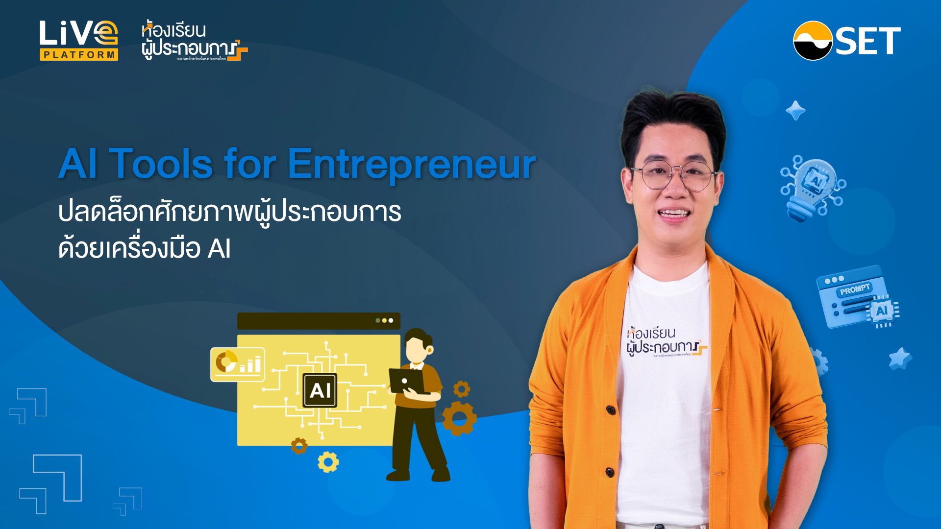 เข้าใจศักยภาพของ AI วิธีการเลือกใช้เครื่องมือ AI ให้เหมาะกับงาน เคล็ดลับการเขียน Prompt ให้ได้ผลลัพธ์ที่มีประสิทธิภาพ ไปจนถึงการใช้ AI Agent เป็นผู้ช่วยอัตโนมัติ ลดต้นทุน ลดเวลา และสร้างโอกาสเติบโตให้ธุรกิจ