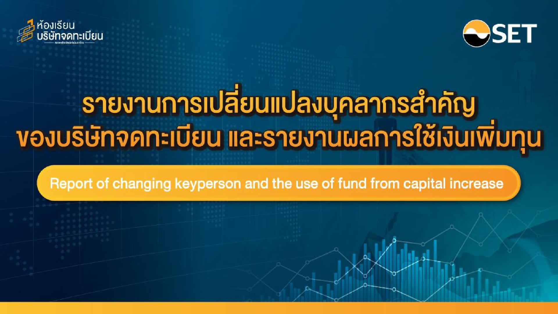 รายงานการเปลี่ยนแปลงบุคลากรสำคัญของบริษัทจดทะเบียน และรายงานผลการใช้เงินเพิ่มทุน
